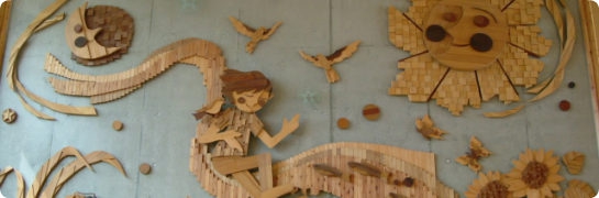 児童玄関前レリーフ 「太陽と月のハーモニー」